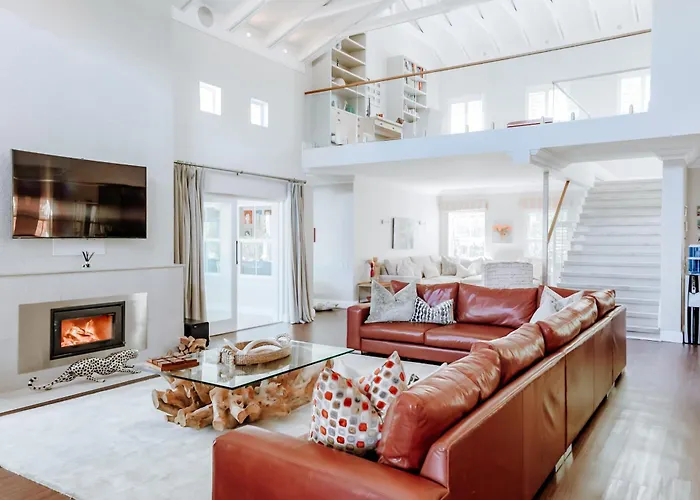 Featuring a swimming pool for guests' relaxation, the 7-bedroom Luxe Family Home With Solar Power In Secure Hout Bay Estate Cape Town is located nearly a 10-minute drive from Eagles Nest Trig beacon. Featuring a terrace, the Cape Town villa is situated in proximity to the landscaped World of Birds Aviaries.